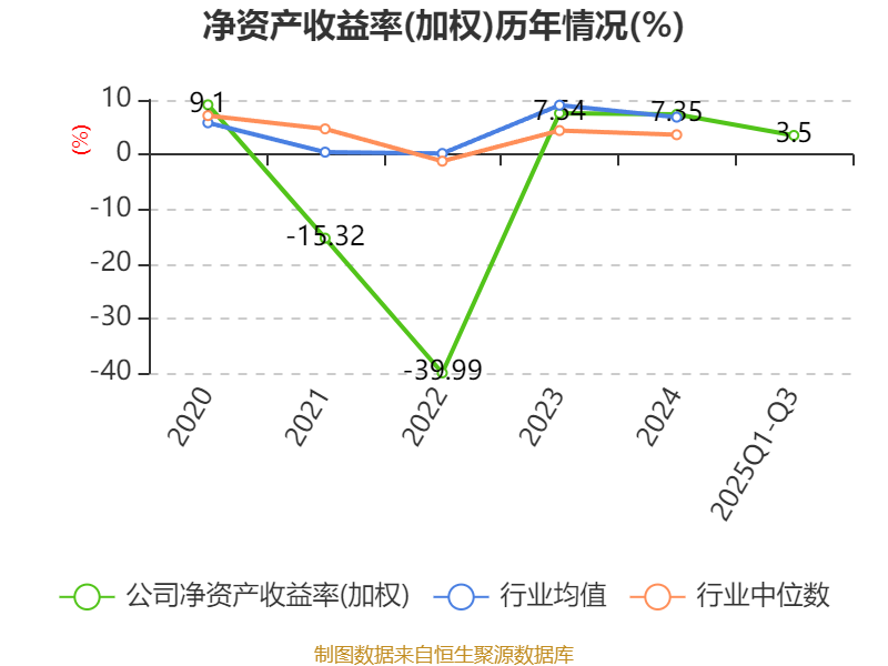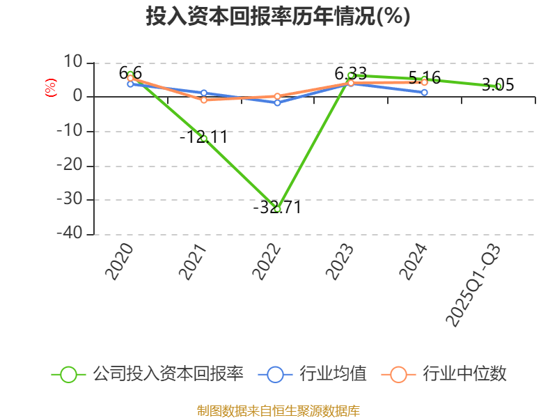 盈利能力方面, 2025年前三季度公司加权平均净资产收益率为3.5%,同比下降2.43个百分点。公司2025年前三季度投入资本回报率为3.05%,较上年同期下降1.58个百分点。