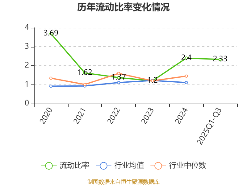 2025年前三季度,公司流动比率为2.33,速动比率为2.2。