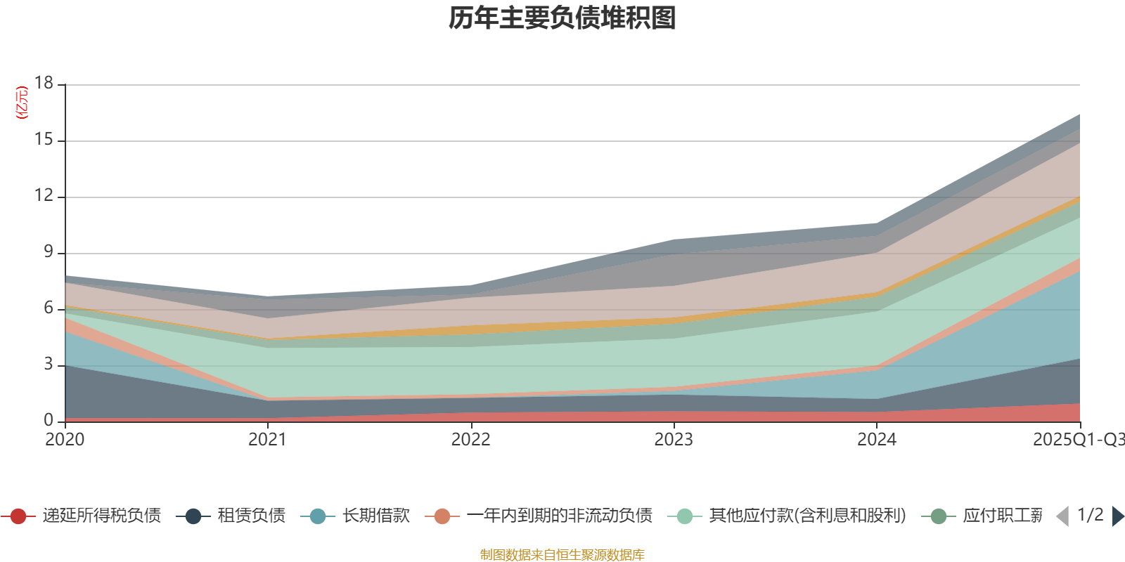 负债重大变化方面,截至2025年三季度末,公司长期借款较上年末增加205.44%,占公司总资产比重上升6.63个百分点;租赁负债较上年末增加242.4%,占公司总资产比重上升3.66个百分点;其他应付款(含利息和股利)较上年末减少25.8%,占公司总资产比重下降3.13个百分点;一年内到期的非流动负债较上年末增加179.11%,占公司总资产比重上升0.96个百分点。