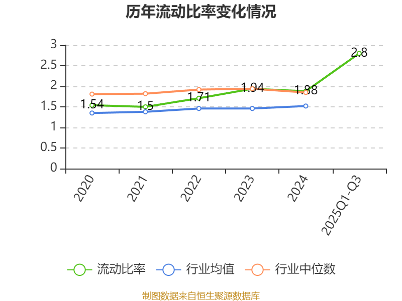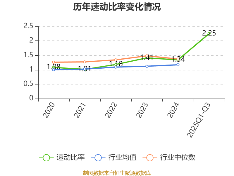 2025年前三季度,公司流动比率为2.8,速动比率为2.25。