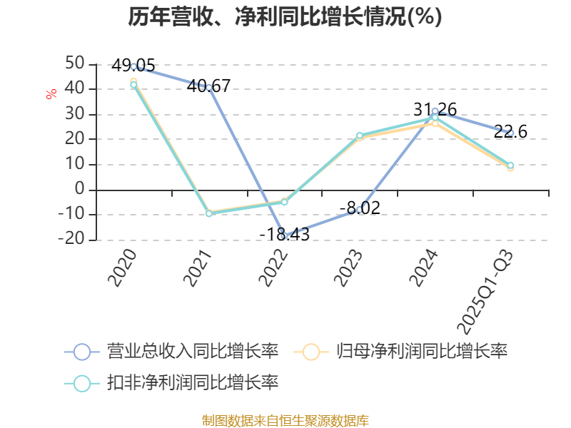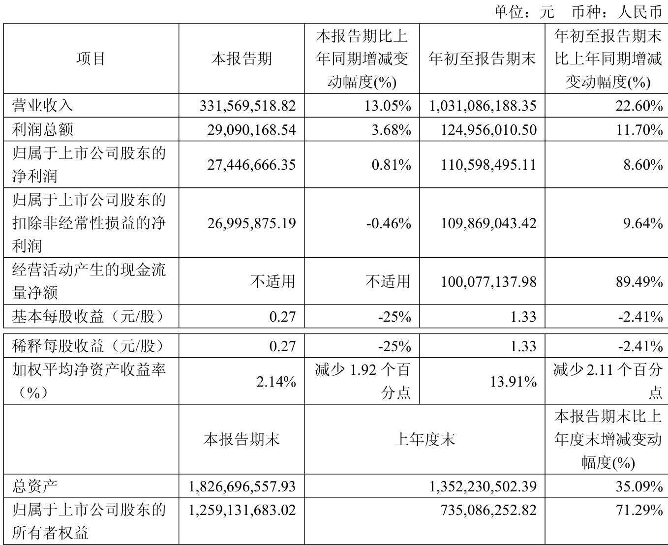 资产重大变化方面,截至2025年三季度末,公司应收票据及应收账款较上年末减少12.14%,占公司总资产比重下降10.36个百分点;货币资金较上年末增加86.39%,占公司总资产比重上升9.89个百分点;其他流动资产较上年末增加324.79%,占公司总资产比重上升8.55个百分点;存货较上年末减少5.92%,占公司总资产比重下降7.41个百分点。