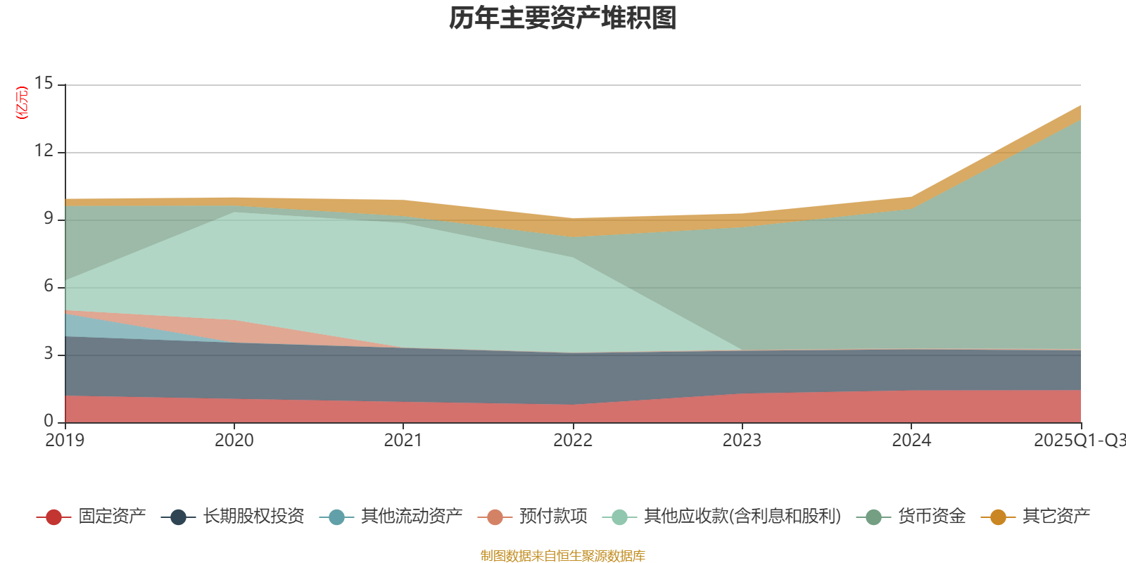 资产重大变化方面,截至2025年三季度末,公司货币资金较上年末增加64.52%,占公司总资产比重上升10.47个百分点;长期股权投资较上年末减少2.91%,占公司总资产比重下降5.64个百分点;固定资产较上年末增加0.68%,占公司总资产比重下降4.02个百分点;递延所得税资产较上年末减少99.85%,占公司总资产比重下降1.32个百分点。
