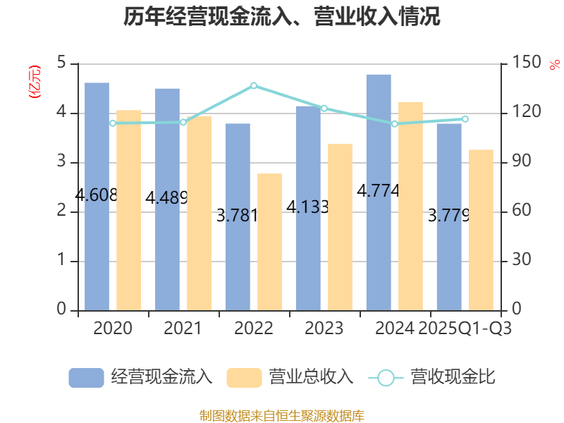 2025年前三季度,公司流动比率为5.27,速动比率为5.09。