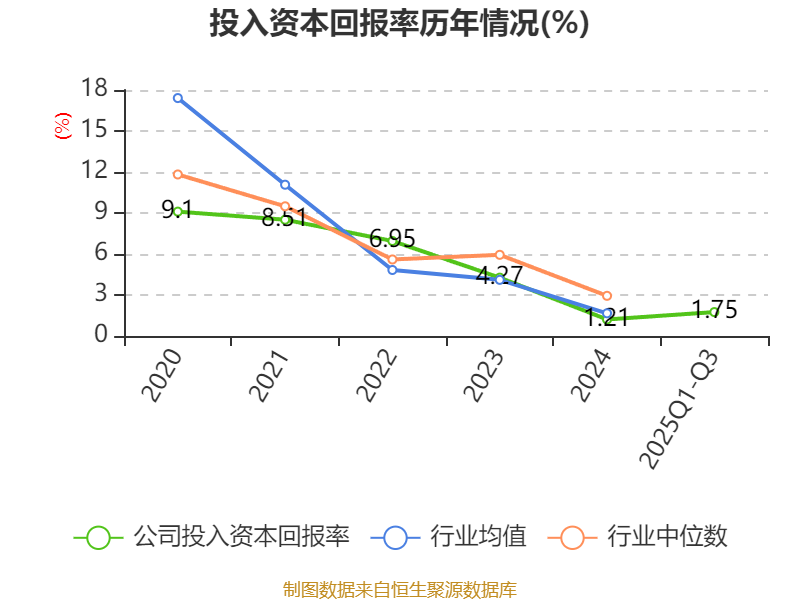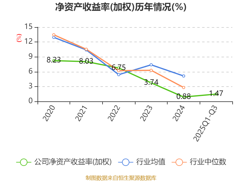 盈利能力方面, 2025年前三季度公司加权平均净资产收益率为1.47%,同比上升0.25个百分点。公司2025年前三季度投入资本回报率为1.75%,较上年同期上升0.46个百分点。