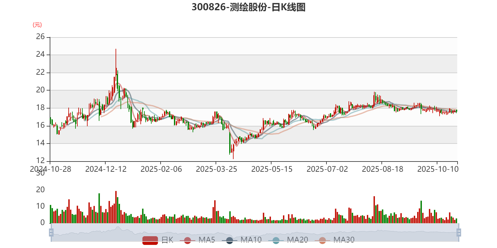 中证智能财讯测绘股份(300826)10月28日披露2025年第三季度报告。前三季度公司实现营业总收入3.85亿元,同比增长8.03%;归母净利润2000.35万元,同比增长27.41%;扣非净利润1315.56万元,同比增长23.63%;经营活动产生的现金流量净额为-9852.27万元,上年同期为-6381.33万元;报告期内,测绘股份基本每股收益为0.12元,加权平均净资产收益率为1.47%。