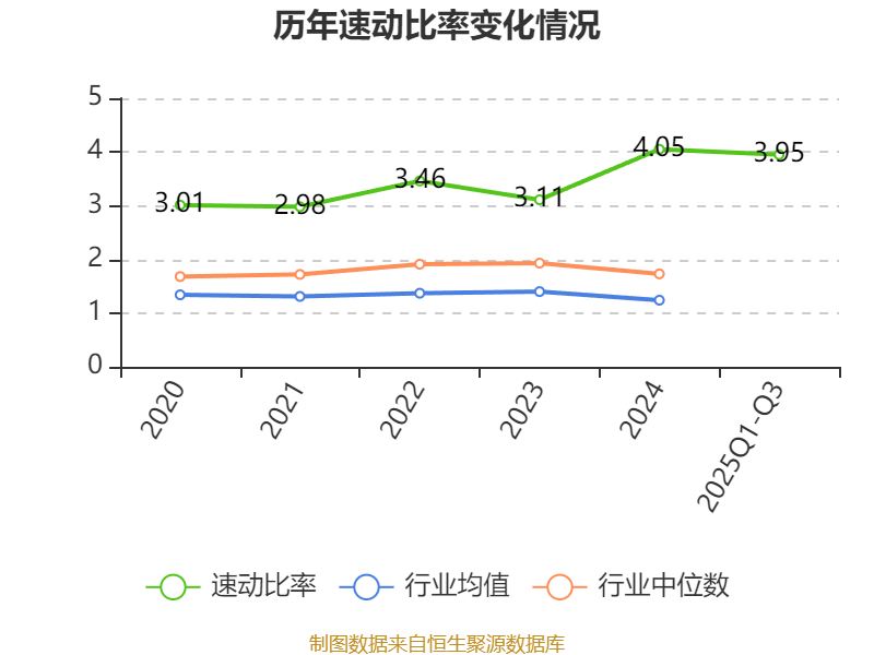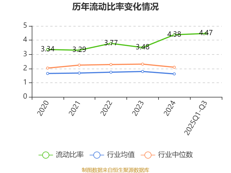 2025年前三季度,公司流动比率为4.47,速动比率为3.95。