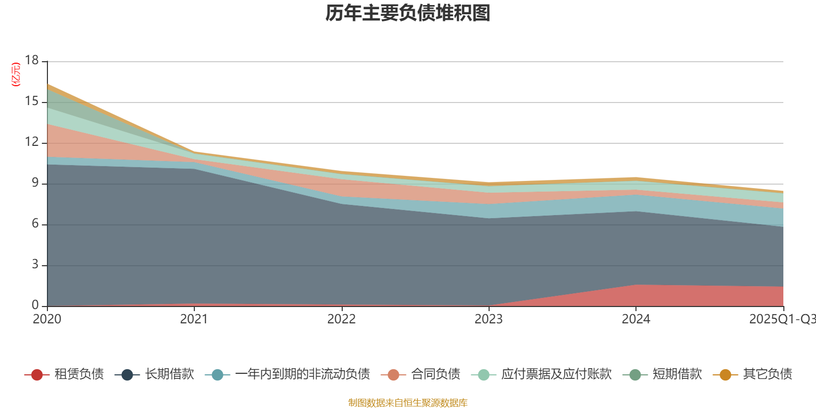 负债重大变化方面,截至2025年三季度末,公司长期借款较上年末减少18.52%,占公司总资产比重下降2.74个百分点;一年内到期的非流动负债较上年末增加10.66%,占公司总资产比重上升0.56个百分点;合同负债较上年末增加21.81%,占公司总资产比重上升0.31个百分点;租赁负债较上年末减少9.07%,占公司总资产比重下降0.3个百分点。
