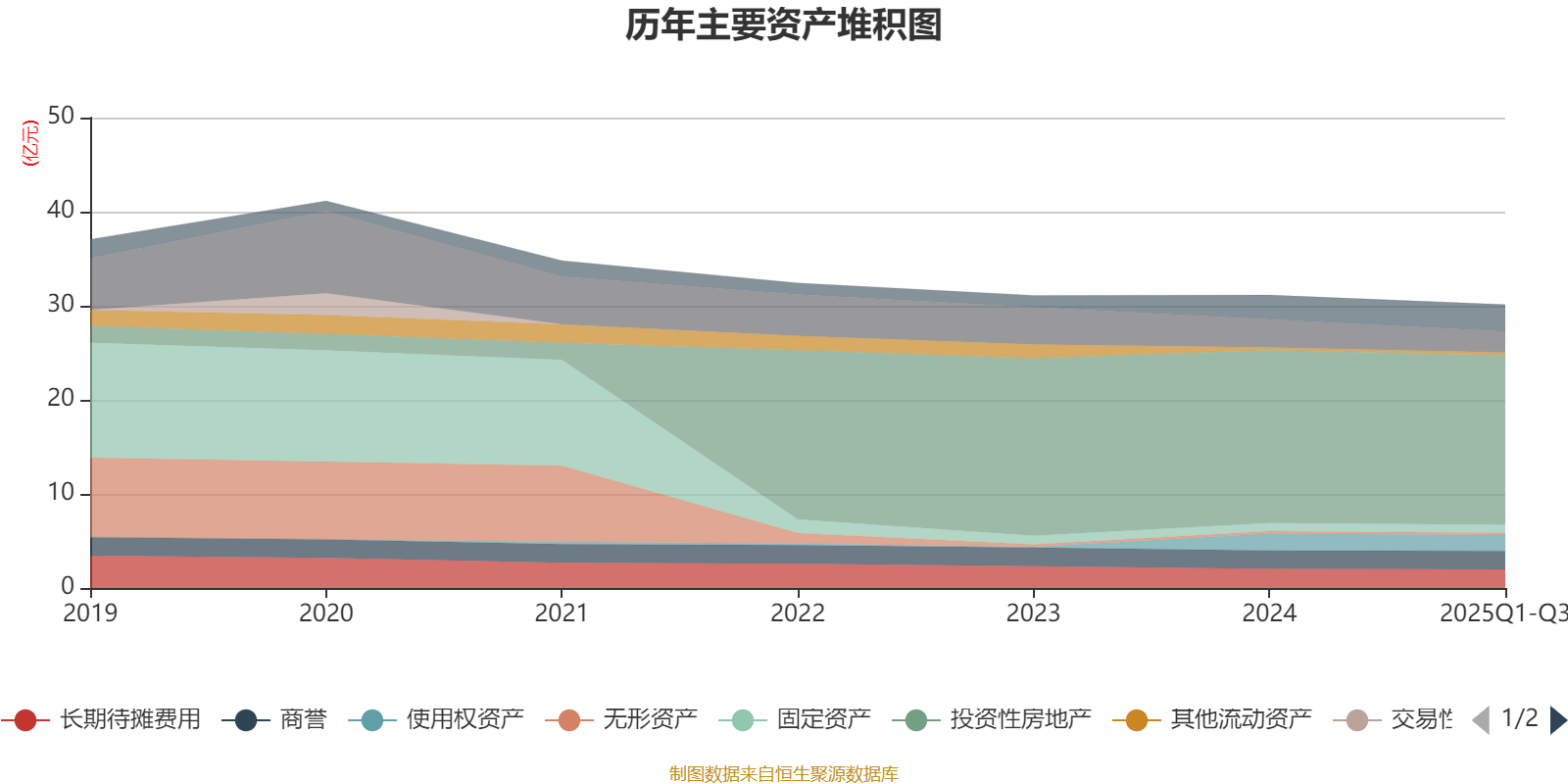 资产重大变化方面,截至2025年三季度末,公司货币资金较上年末减少24.19%,占公司总资产比重下降2.06个百分点;投资性房地产较上年末减少2%,占公司总资产比重上升0.75个百分点;其他非流动资产较上年末增加16.23%,占公司总资产比重上升0.75个百分点;预付款项较上年末增加1310.08%,占公司总资产比重上升0.3个百分点。