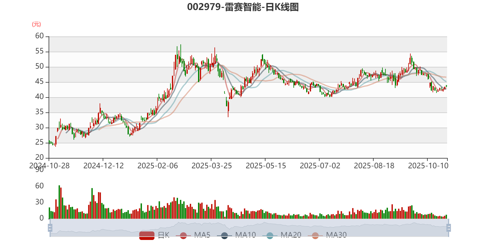 中证智能财讯雷赛智能(002979)10月28日披露2025年第三季度报告。前三季度公司实现营业总收入13亿元,同比增长12.57%;归母净利润1.6亿元,同比增长11.01%;扣非净利润1.55亿元,同比增长9.16%;经营活动产生的现金流量净额为1.91亿元,同比增长61.85%;报告期内,雷赛智能基本每股收益为0.51元,加权平均净资产收益率为10.23%。