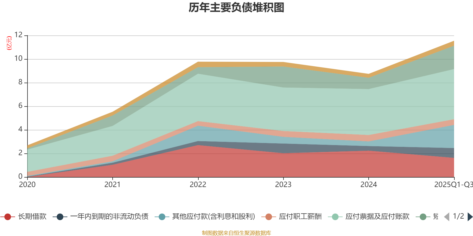 负债重大变化方面,截至2025年三季度末,公司其他应付款(含利息和股利)较上年末增加392.76%,占公司总资产比重上升5.29个百分点;长期借款较上年末减少27.48%,占公司总资产比重下降3.64个百分点;短期借款较上年末增加108.07%,占公司总资产比重上升3.02个百分点;一年内到期的非流动负债较上年末增加115.25%,占公司总资产比重上升1.32个百分点。