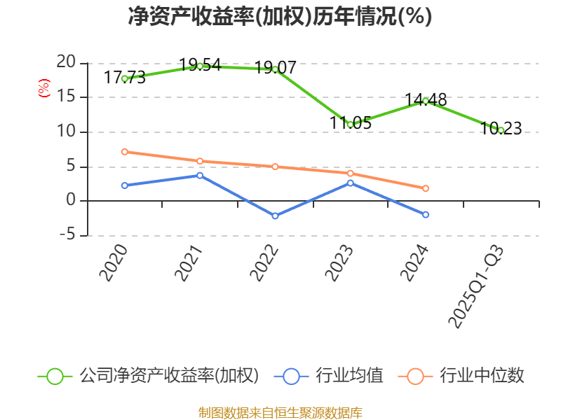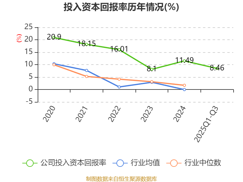 盈利能力方面, 2025年前三季度公司加权平均净资产收益率为10.23%,同比下降0.32个百分点。公司2025年前三季度投入资本回报率为8.46%,较上年同期上升0.32个百分点。