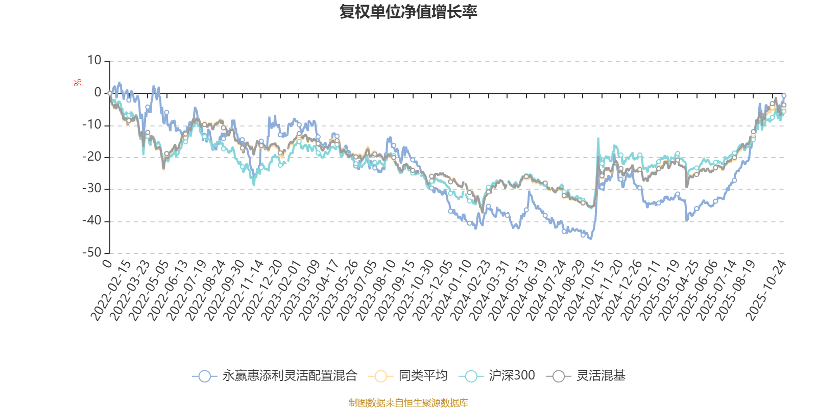截至10月24日,永赢惠添利灵活配置混合近三个月复权单位净值增长率为29.49%,位于同类可比基金168/1287;近半年复权单位净值增长率为56.11%,位于同类可比基金100/1287;近一年复权单位净值增长率为37.25%,位于同类可比基金288/1287;近三年复权单位净值增长率为28.26%,位于同类可比基金343/1286。