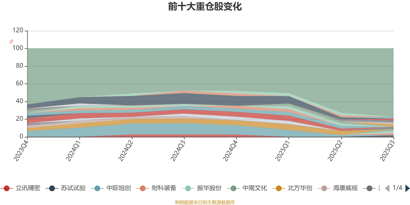 截至2025年三季度末,基金十大重仓股分别是正帆科技、金雷股份、耐科装备、振华股份、百胜智能、英搏尔、中南文化、捷顺科技、智莱科技、苏试试验。