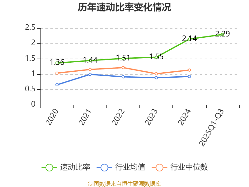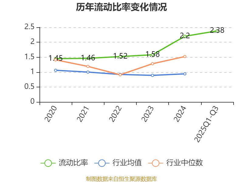 2025年前三季度,公司流动比率为2.38,速动比率为2.29。