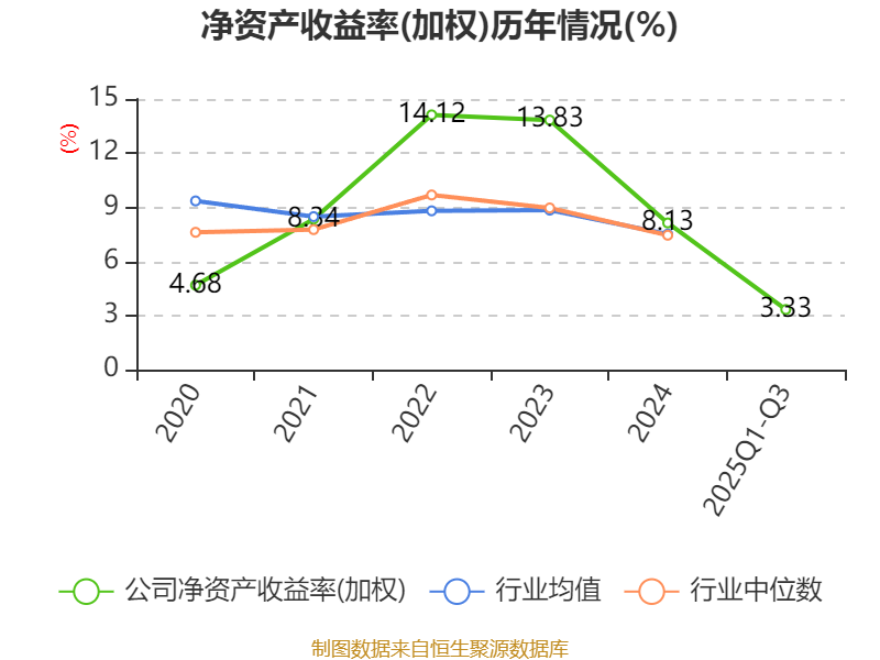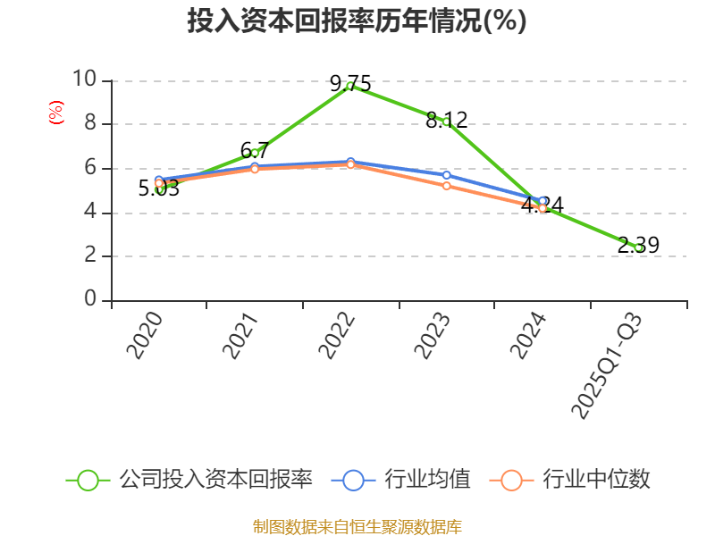 盈利能力方面, 2025年前三季度公司加权平均净资产收益率为3.33%,同比下降4.02个百分点。公司2025年前三季度投入资本回报率为2.39%,较上年同期下降1.24个百分点。