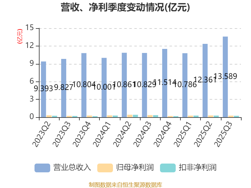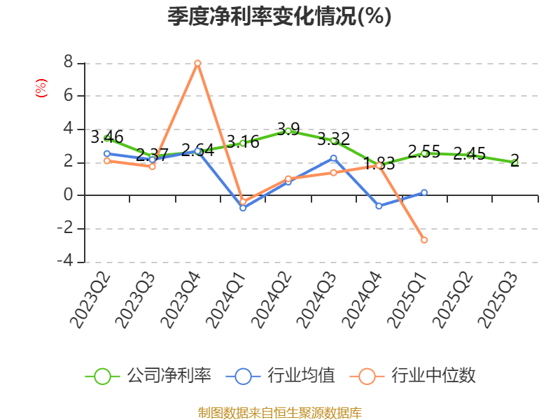 2025年前三季度,公司流动比率为3.56,速动比率为3.43。