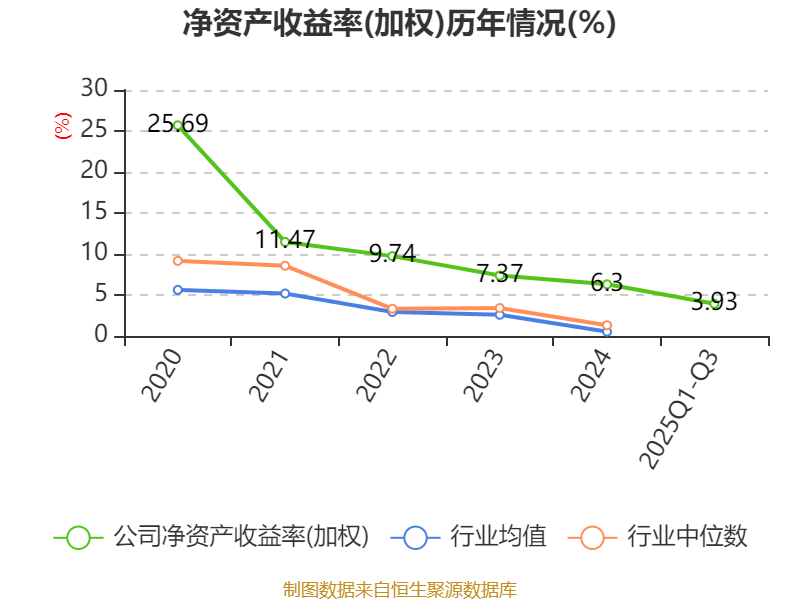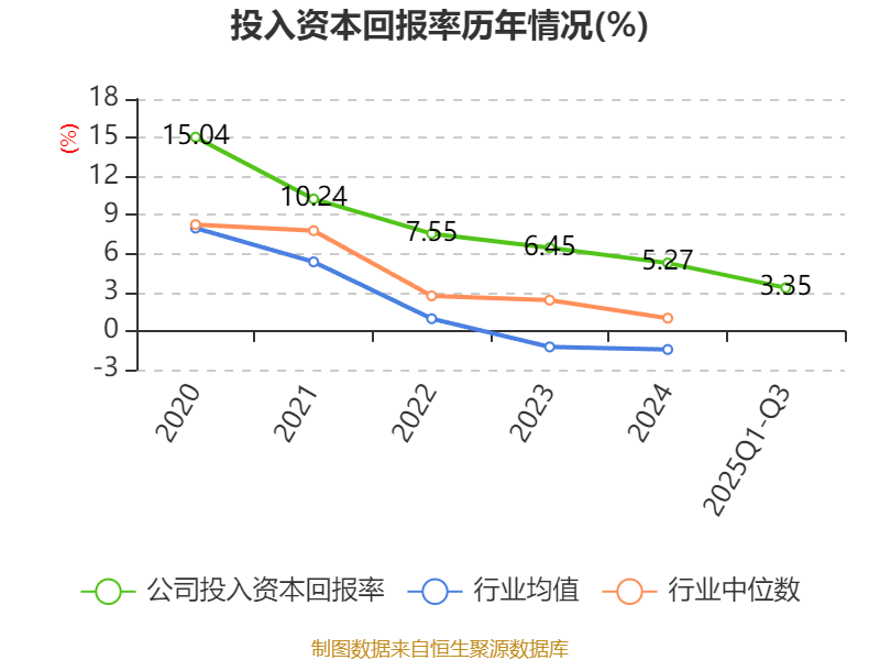 盈利能力方面, 2025年前三季度公司加权平均净资产收益率为3.93%,同比下降1.36个百分点。公司2025年前三季度投入资本回报率为3.35%,较上年同期下降1.28个百分点。