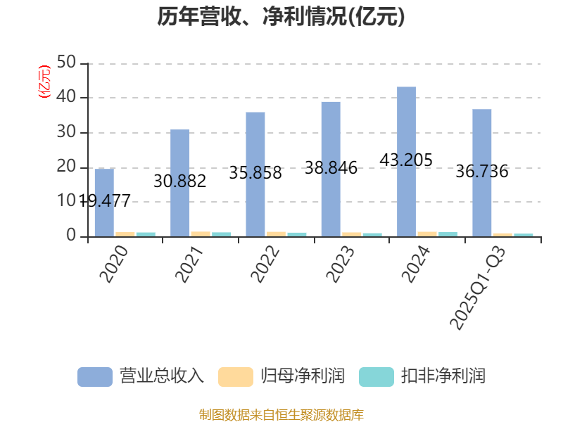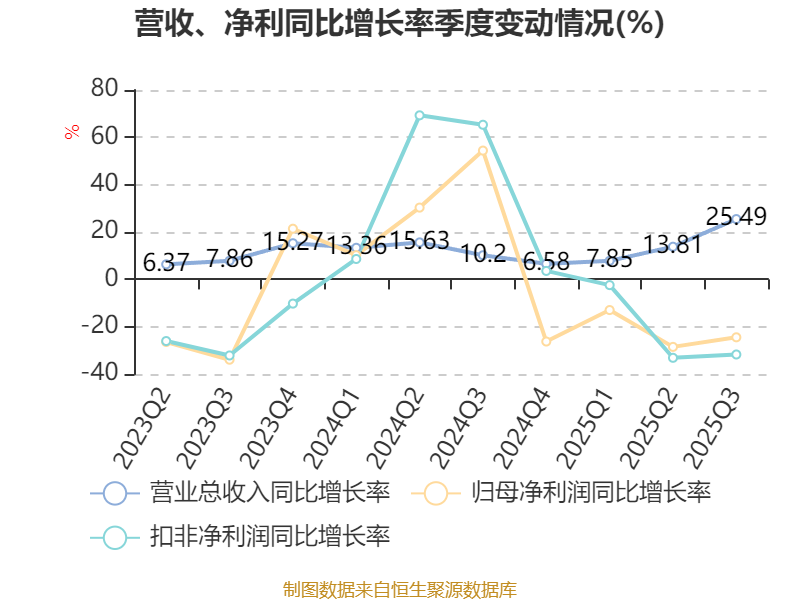 负债重大变化方面,截至2025年三季度末,公司短期借款较上年末减少33.9%,占公司总资产比重下降3个百分点;应付职工薪酬较上年末增加4.09%,占公司总资产比重上升0.7个百分点;合同负债较上年末减少41.44%,占公司总资产比重下降0.5个百分点;一年内到期的非流动负债较上年末减少38.54%,占公司总资产比重下降0.25个百分点。