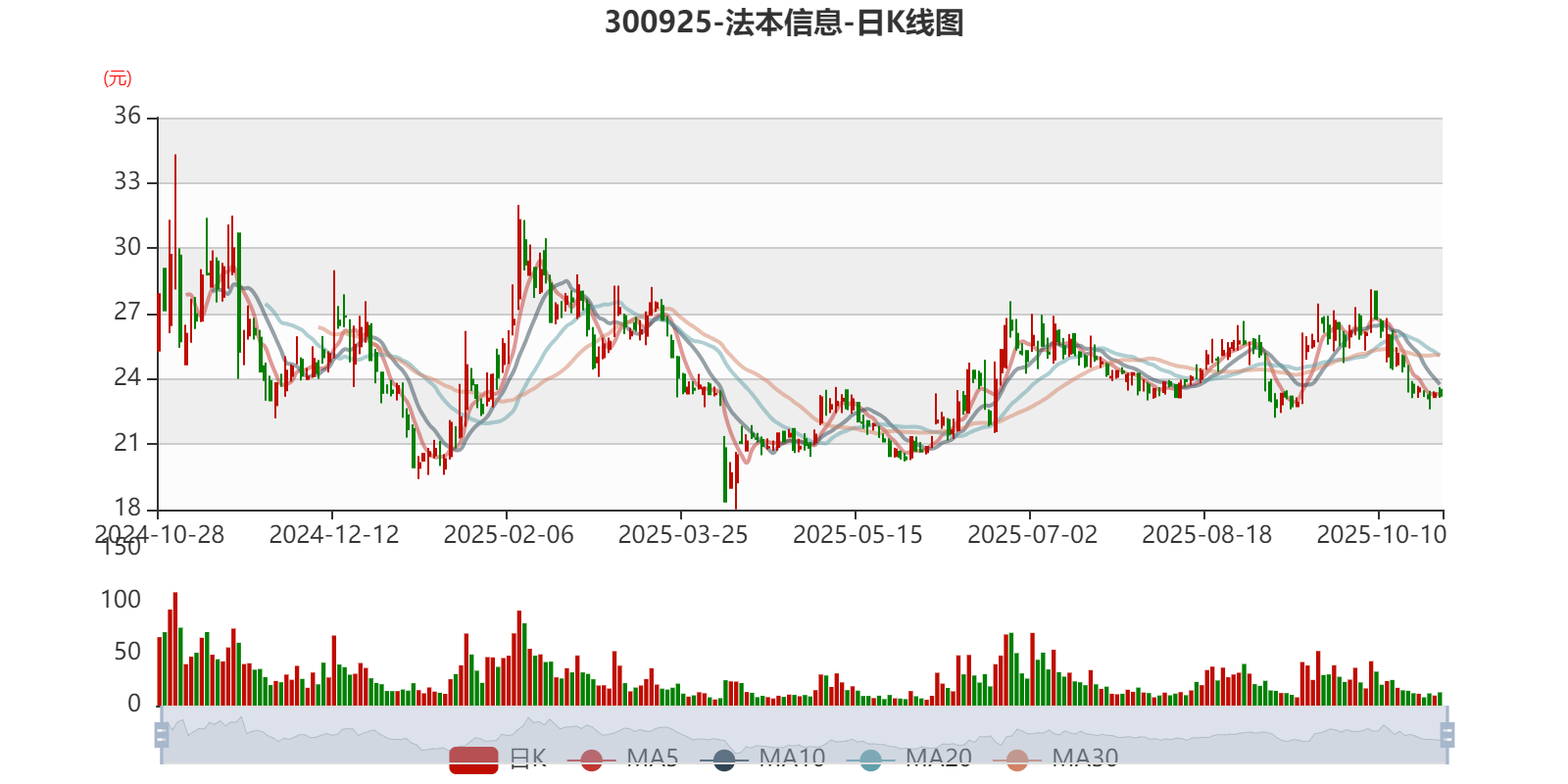 中证智能财讯法本信息(300925)10月28日披露2025年第三季度报告。前三季度公司实现营业总收入36.74亿元,同比增长15.92%;归母净利润8496.24万元,同比下降22.70%;扣非净利润7888.45万元,同比下降24.33%;经营活动产生的现金流量净额为-3.47亿元,上年同期为-1.14亿元;报告期内,法本信息基本每股收益为0.2元,加权平均净资产收益率为3.93%。