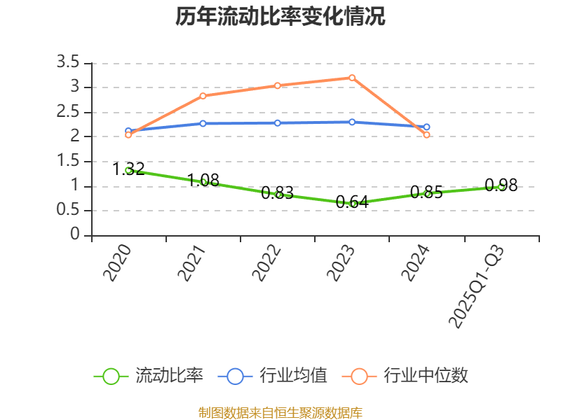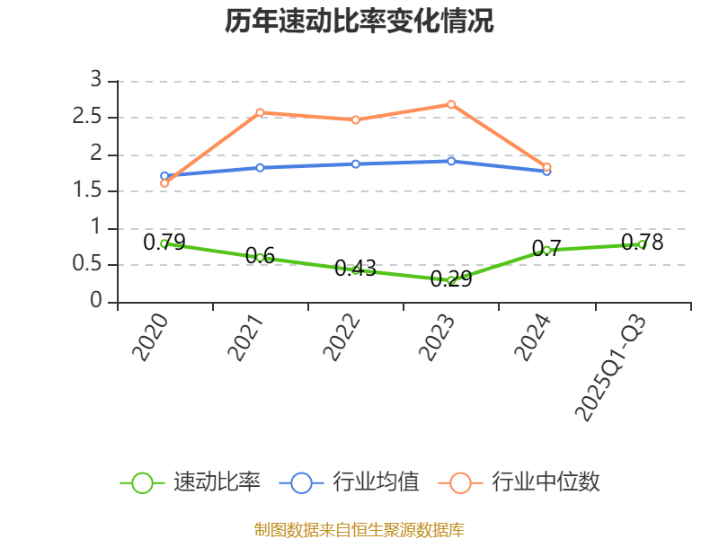 2025年前三季度,公司流动比率为0.98,速动比率为0.78。