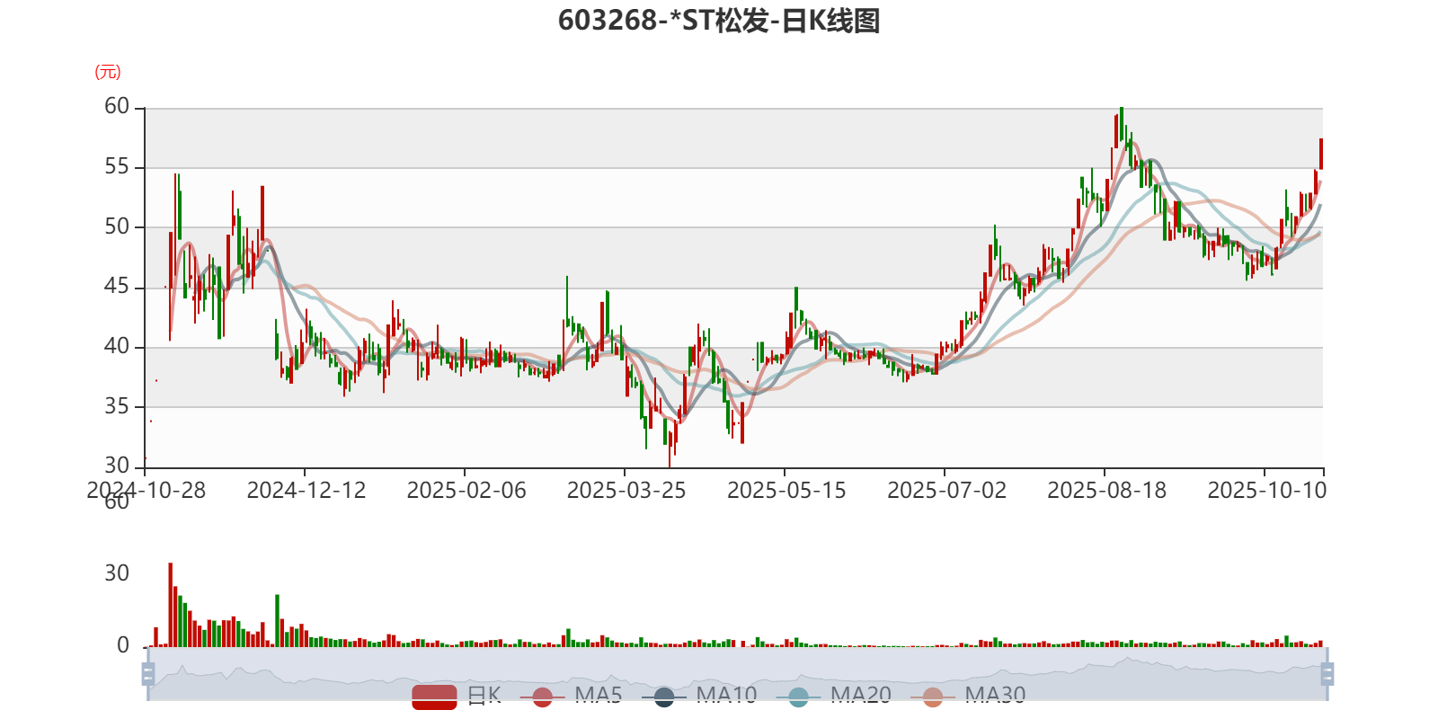 以10月27日收盘价计算,*ST松发目前市盈率(TTM)约为49.71倍,市净率(LF)约6.9倍,市销率(TTM)约6.52倍。