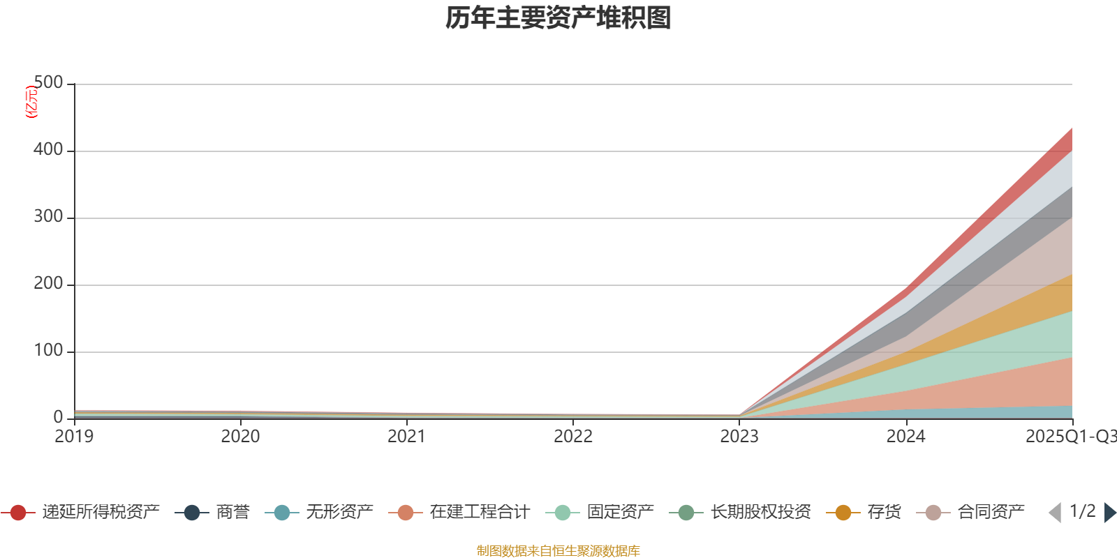 资产重大变化方面,截至2025年三季度末,公司合同资产较上年末增加272%,占公司总资产比重上升7.85个百分点;预付款项较上年末增加33.43%,占公司总资产比重下降6.87个百分点;固定资产较上年末增加74.95%,占公司总资产比重下降4.41个百分点;存货较上年末增加196.32%,占公司总资产比重上升3.11个百分点。