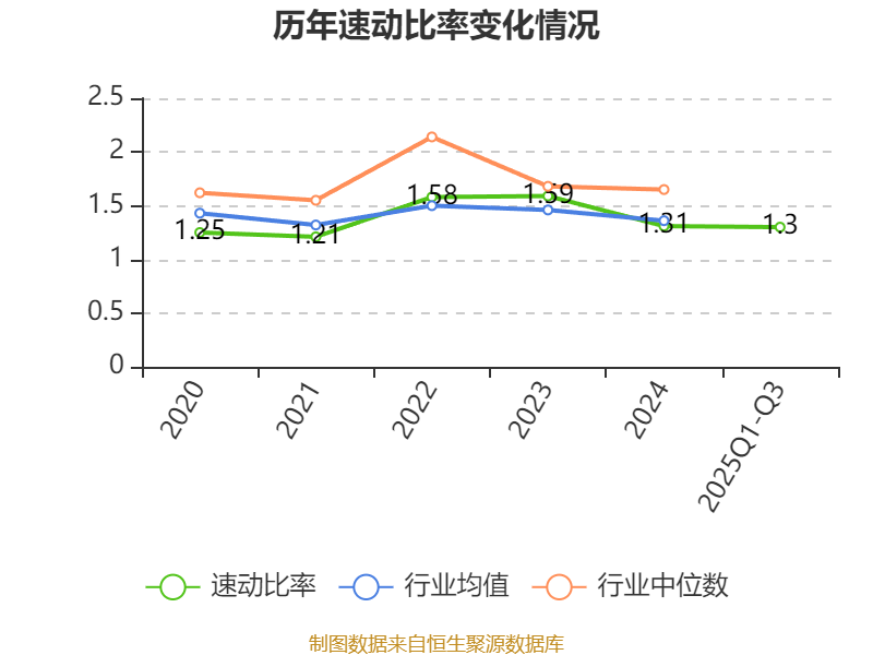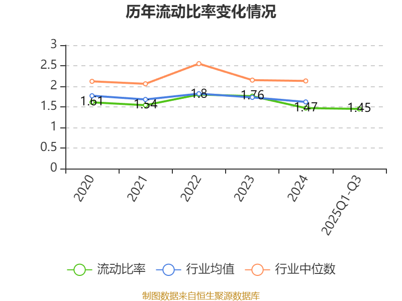 2025年前三季度,公司流动比率为1.45,速动比率为1.3。
