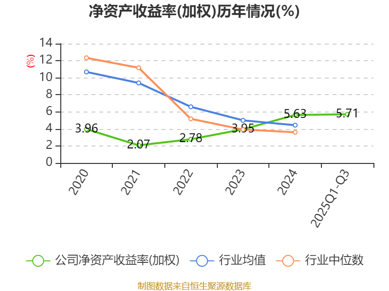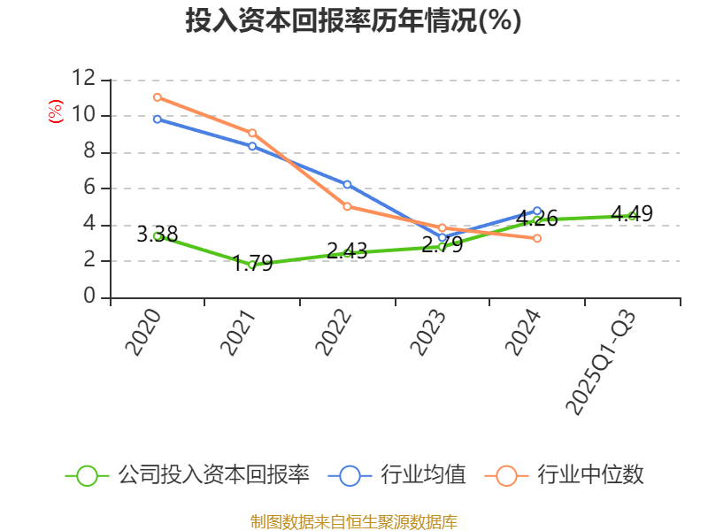 盈利能力方面, 2025年前三季度公司加权平均净资产收益率为5.71%,同比上升1.44个百分点。公司2025年前三季度投入资本回报率为4.49%,较上年同期上升1.31个百分点。