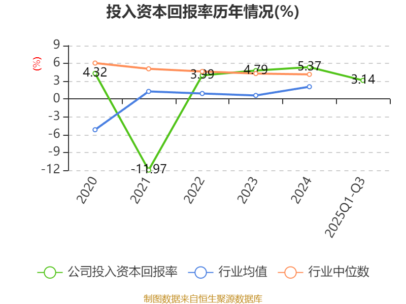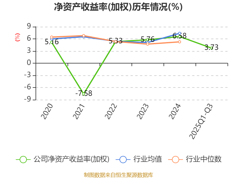 盈利能力方面, 2025年前三季度公司加权平均净资产收益率为3.73%,同比下降3.33个百分点。公司2025年前三季度投入资本回报率为3.14%,较上年同期下降2.72个百分点。