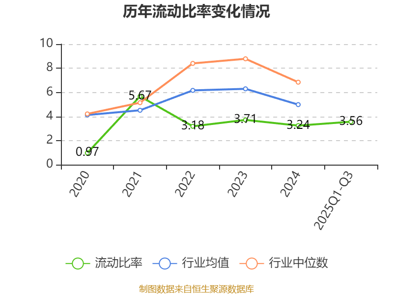 2025年前三季度,公司流动比率为3.56,速动比率为2.93。