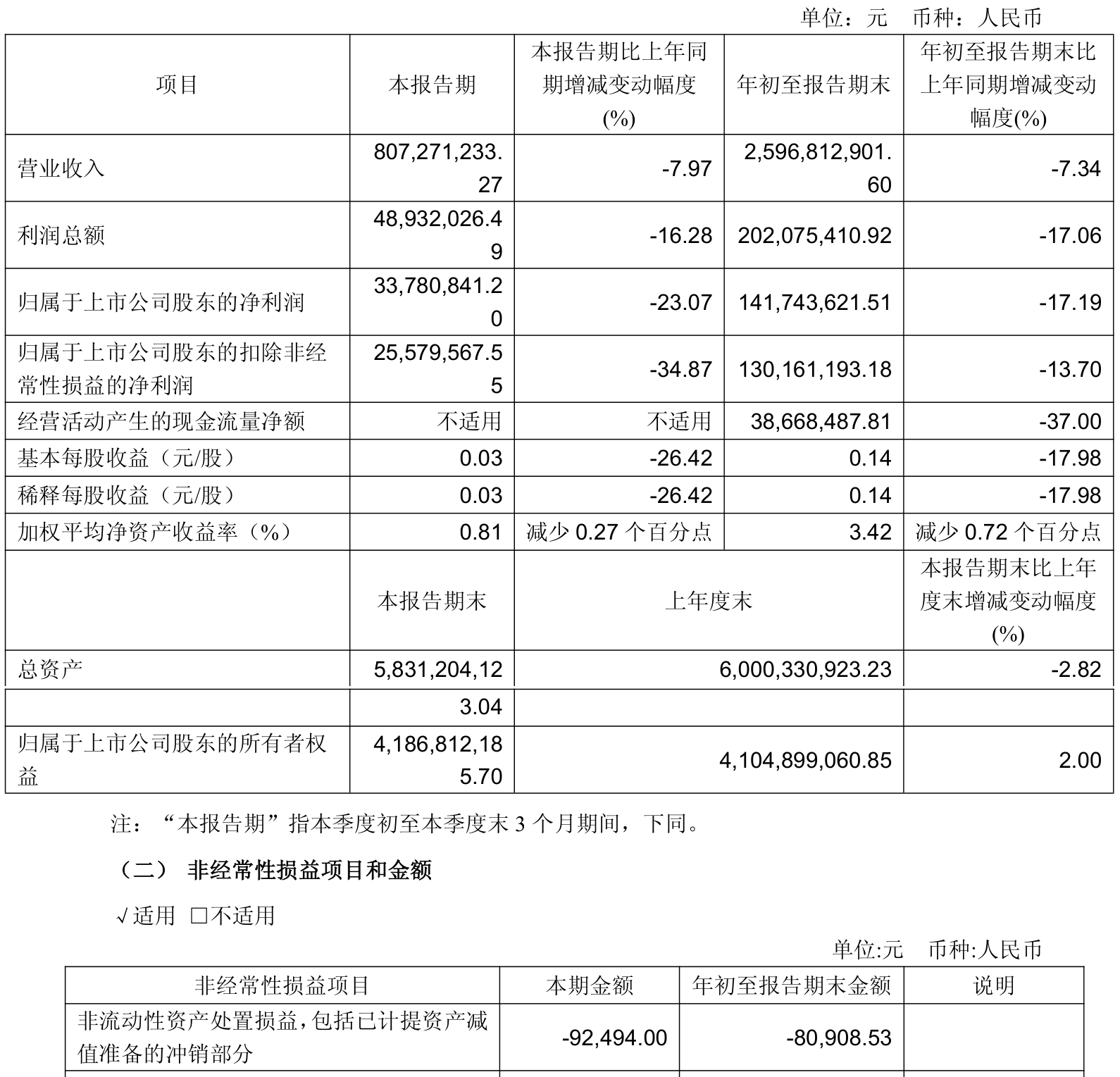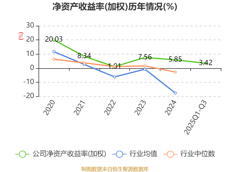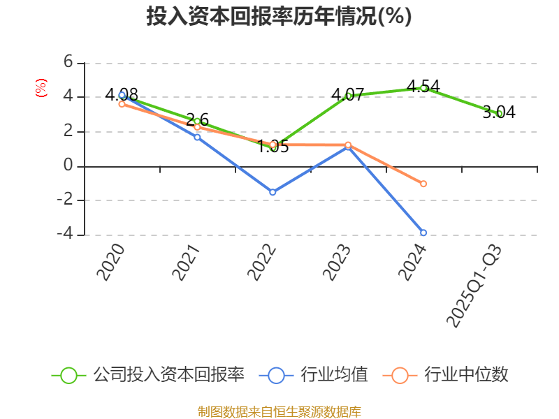 盈利能力方面, 2025年前三季度公司加权平均净资产收益率为3.42%,同比下降0.72个百分点。公司2025年前三季度投入资本回报率为3.04%,较上年同期下降0.21个百分点。