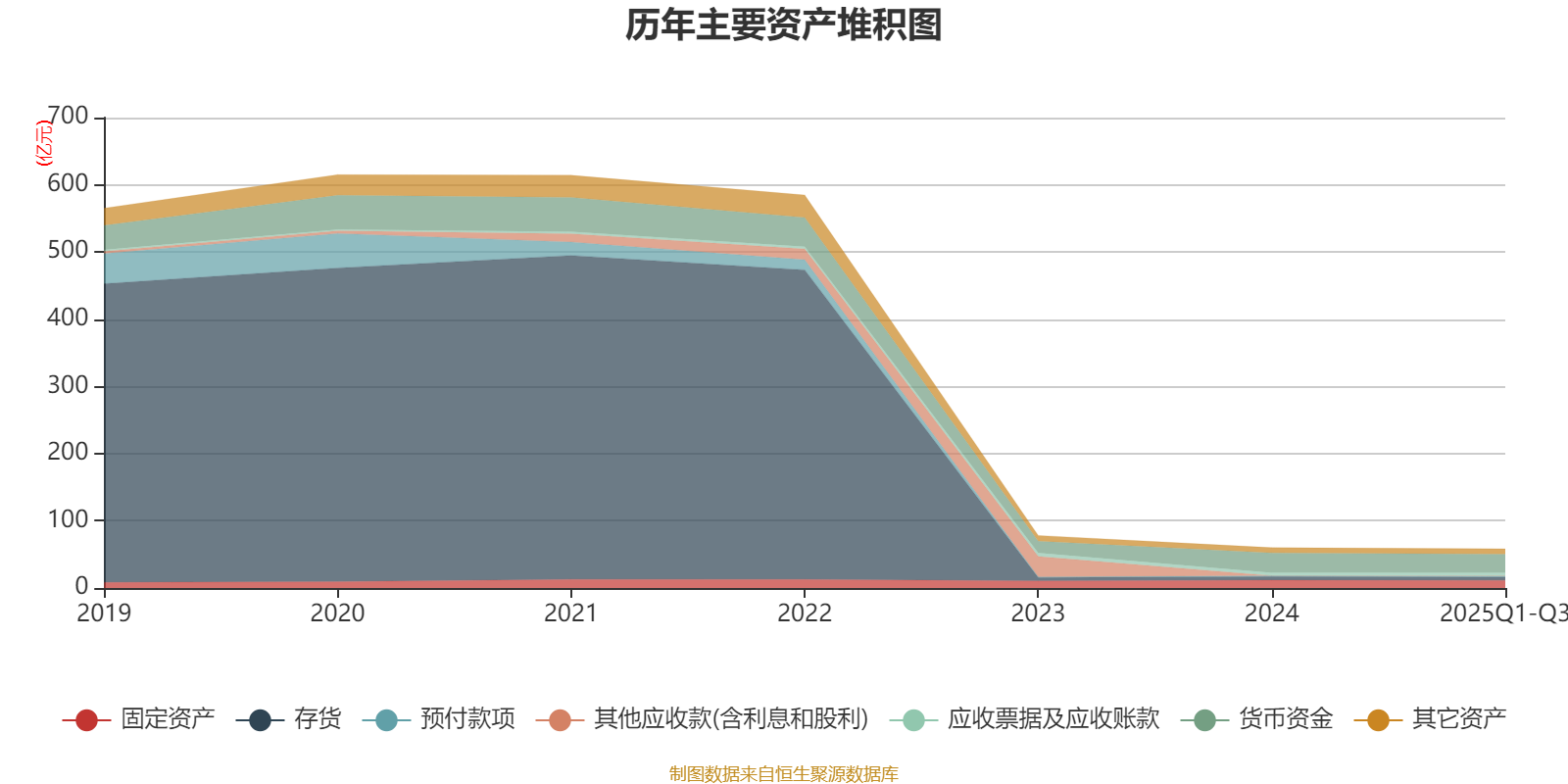 资产重大变化方面,截至2025年三季度末,公司货币资金较上年末减少6.67%,占公司总资产比重下降1.95个百分点;存货较上年末减少13.52%,占公司总资产比重下降1.03个百分点;预付款项较上年末增加57.81%,占公司总资产比重上升0.92个百分点;应收票据及应收账款较上年末增加6.44%,占公司总资产比重上升0.71个百分点。