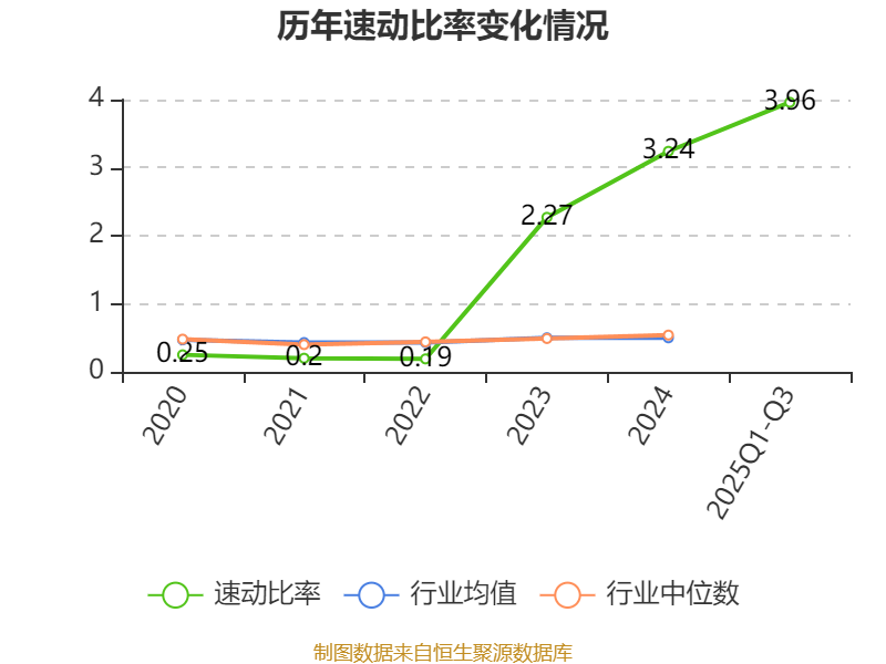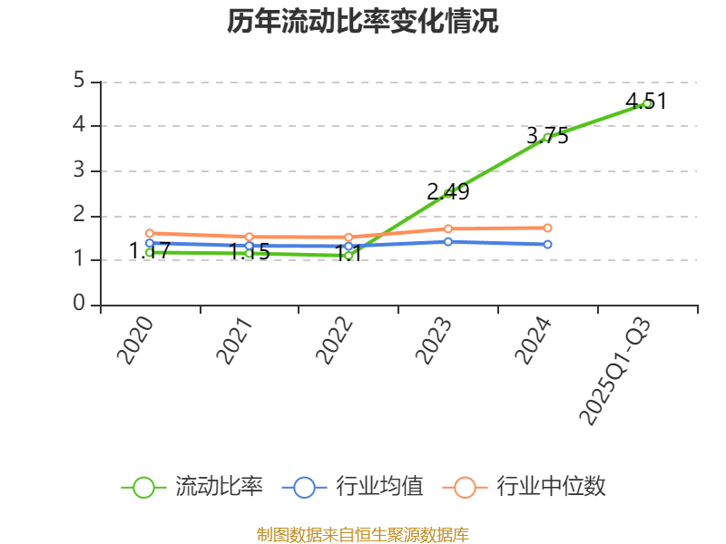 2025年前三季度,公司流动比率为4.51,速动比率为3.96。