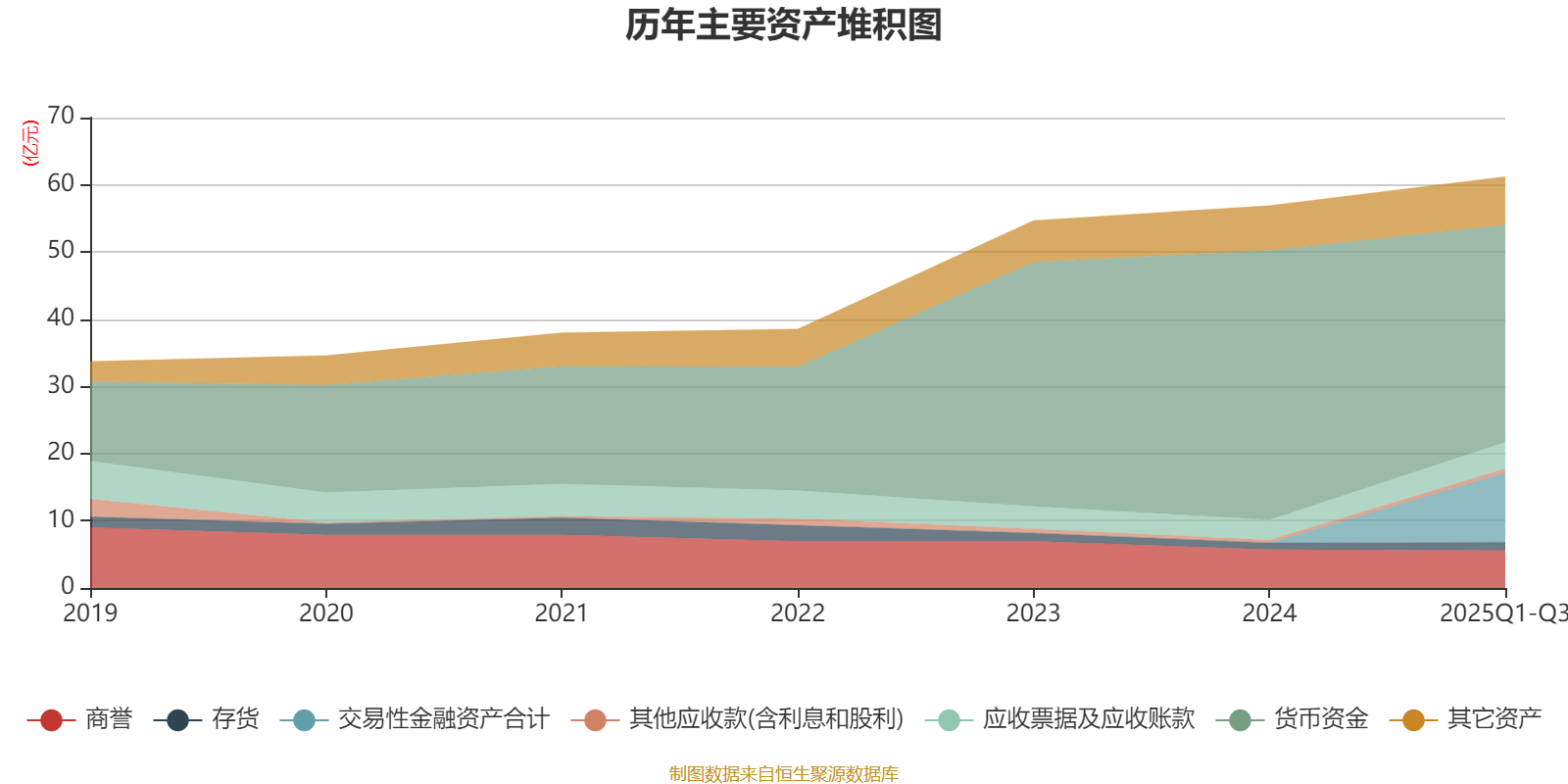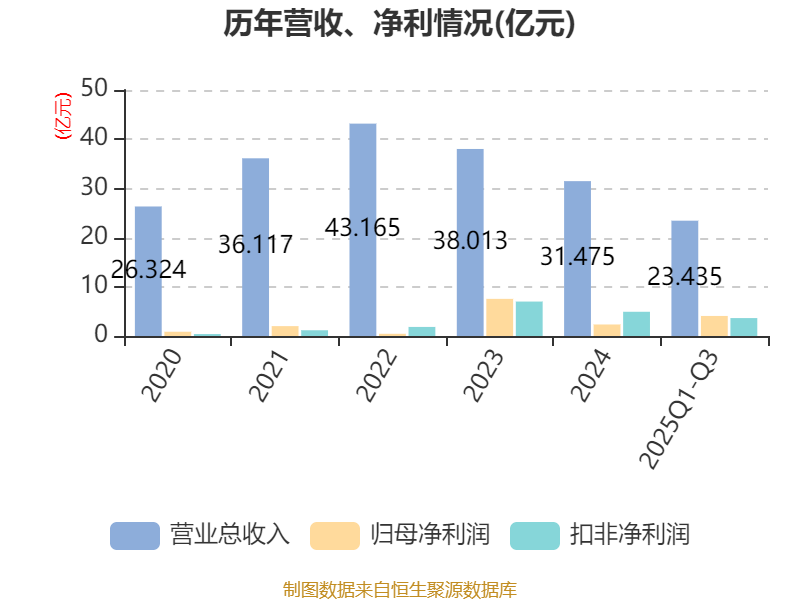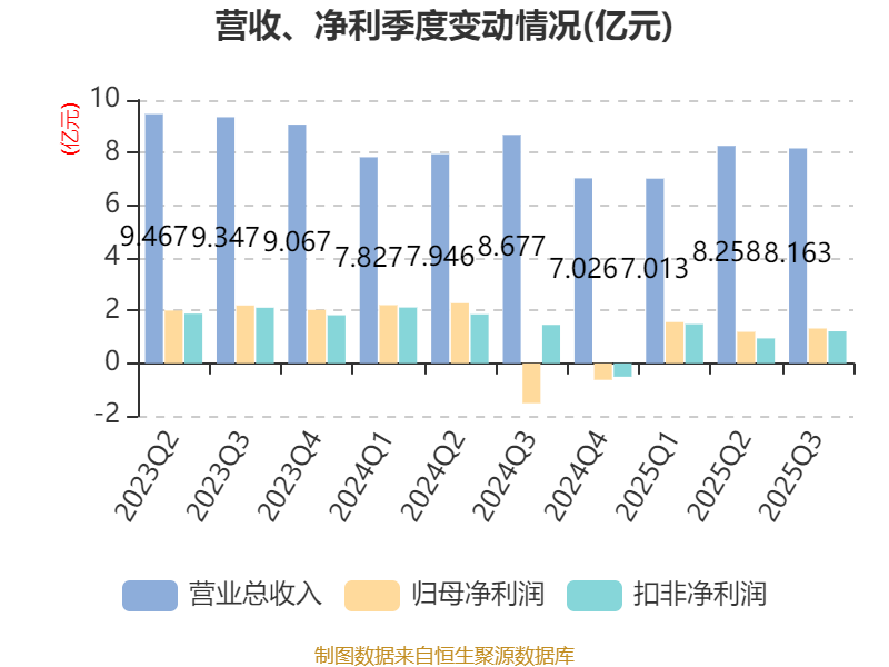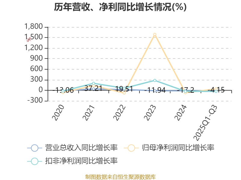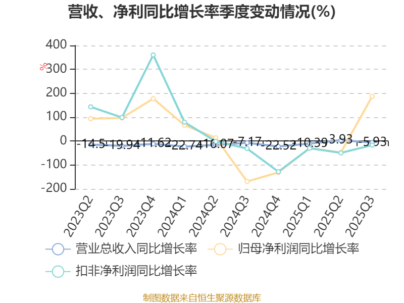 资产重大变化方面,截至2025年三季度末,公司货币资金较上年末减少19.36%,占公司总资产比重下降17.66个百分点;交易性金融资产合计占公司总资产的16.86%,上年末为0;应收票据及应收账款较上年末增加31.88%,占公司总资产比重上升1.18个百分点;商誉较上年末减少2.61%,占公司总资产比重下降0.95个百分点。