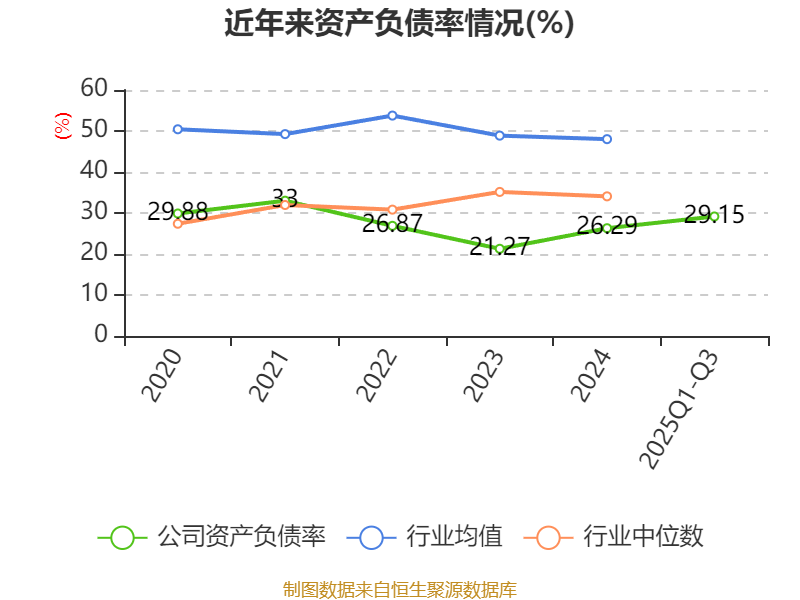 2025年前三季度,公司流动比率为2.97,速动比率为2.9。