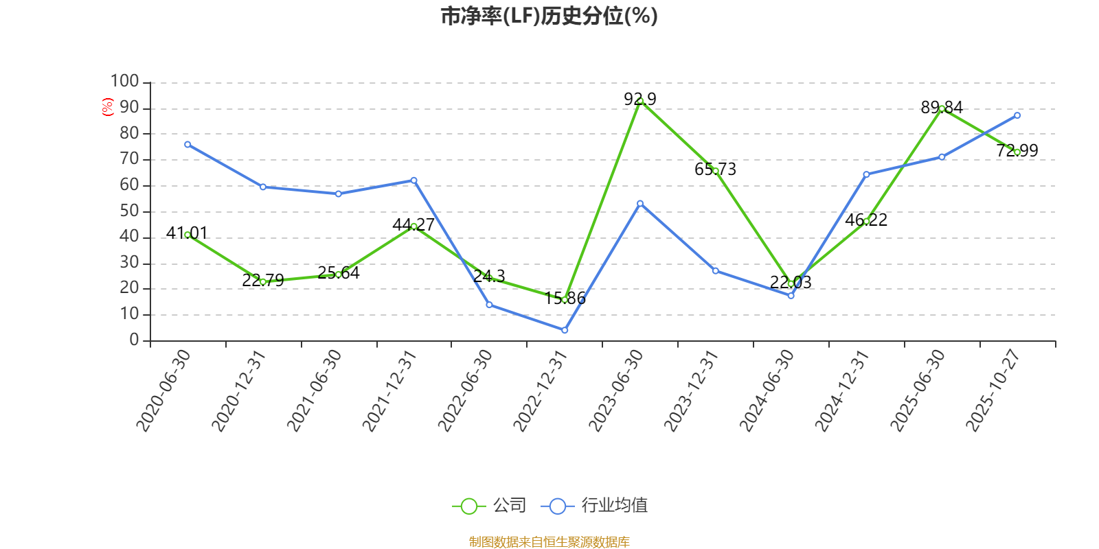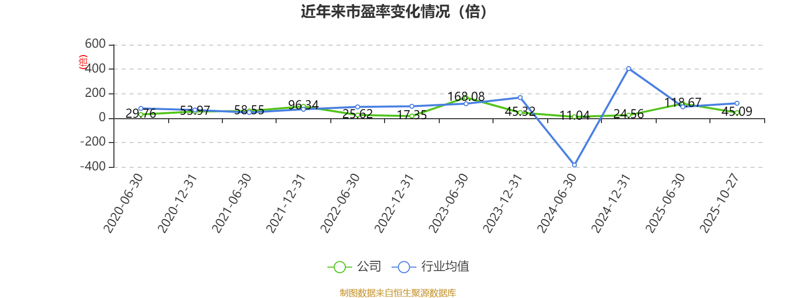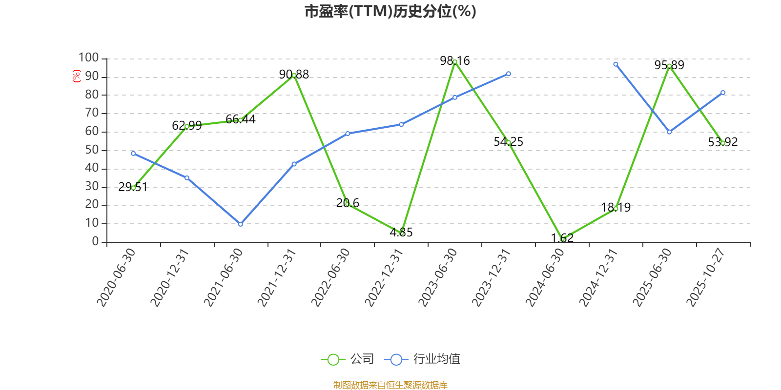 市盈率、市净率为负时,不显示当期分位数,会导致折线图中断。