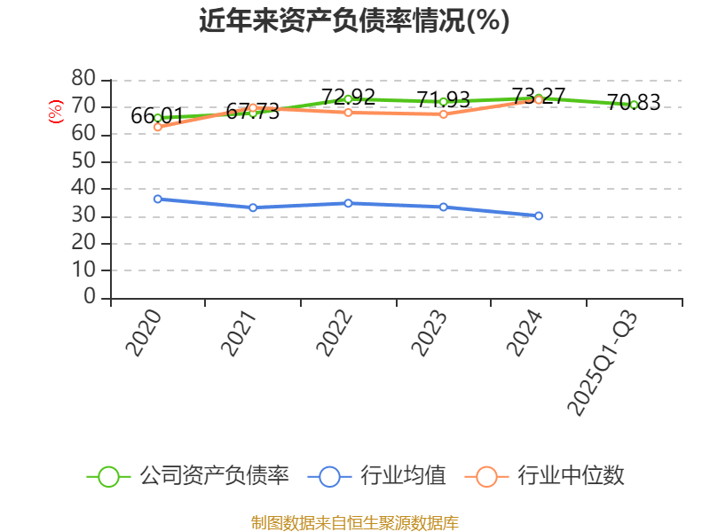 2025年前三季度,公司流动比率为0.61,速动比率为0.52。