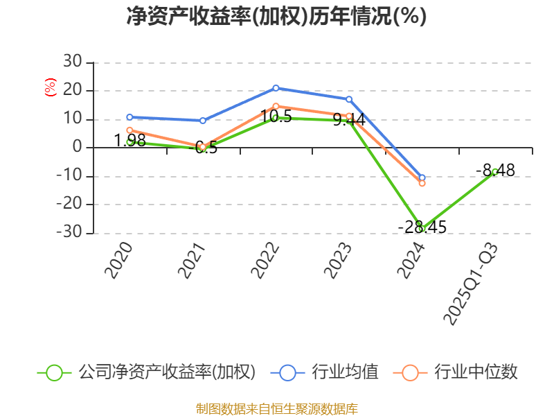 盈利能力方面, 2025年前三季度公司加权平均净资产收益率为-8.48%,同比上升2.46个百分点。公司2025年前三季度投入资本回报率为-3.35%,较上年同期上升1.96个百分点。