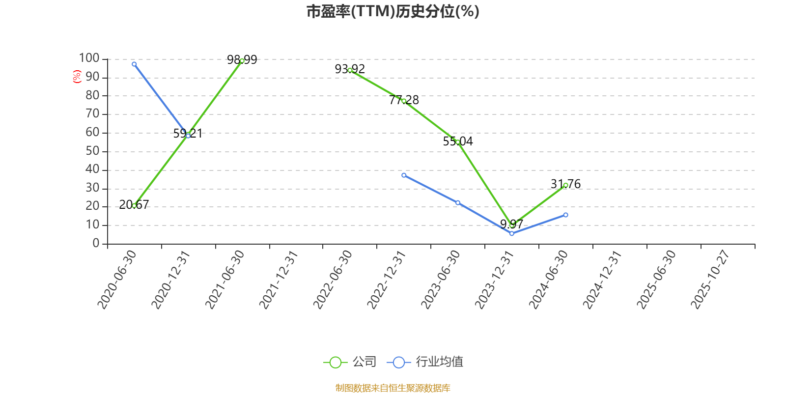 市盈率、市净率为负时,不显示当期分位数,会导致折线图中断。