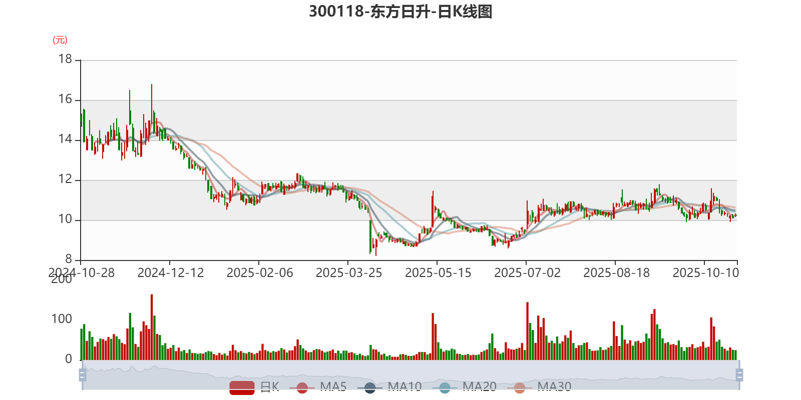 中证智能财讯东方日升(300118)10月28日披露2025年第三季度报告。前三季度公司实现营业总收入104.67亿元,同比下降29.76%;归母净利润亏损9.33亿元,上年同期亏损15.6亿元;扣非净利润亏损12.06亿元,上年同期亏损17.34亿元;经营活动产生的现金流量净额为10.33亿元,上年同期为-43.95亿元;报告期内,东方日升基本每股收益为-0.8321元,加权平均净资产收益率为-8.48%。