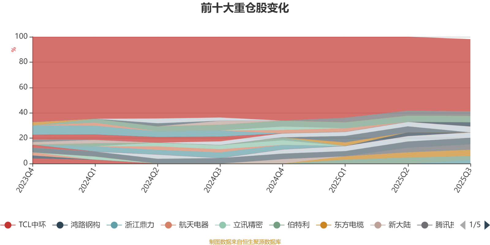 截至2025年三季度末,基金十大重仓股分别是宁德时代、中天科技、东方电缆、徐工机械、九号公司、腾讯控股、中国银河、恺英网络、伯特利、浙江鼎力。