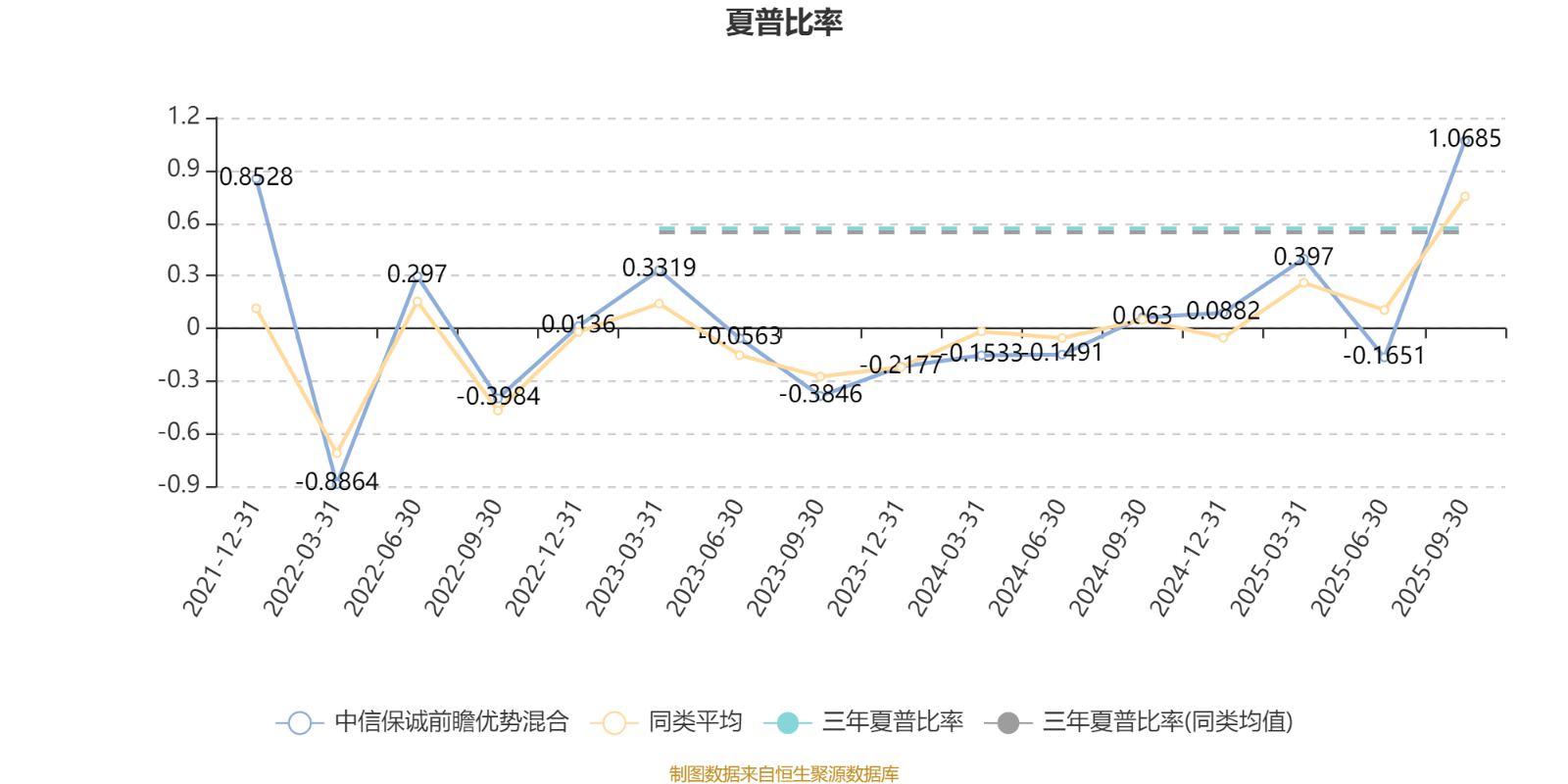 截至9月30日,基金近三年夏普比率为0.5694,位于同类可比基金122/252。