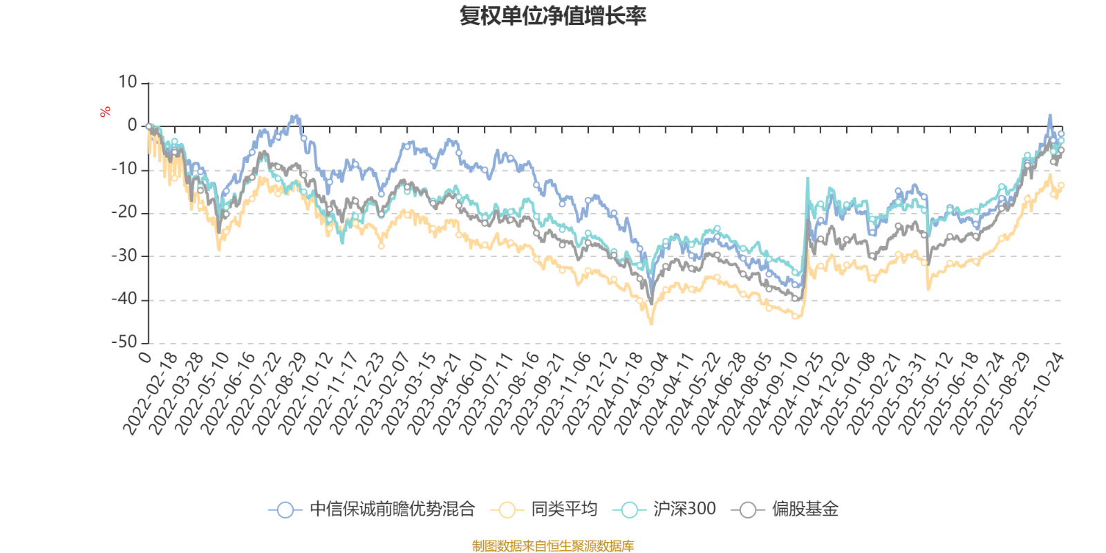截至10月24日,中信保诚前瞻优势混合近三个月复权单位净值增长率为17.84%,位于同类可比基金93/265;近半年复权单位净值增长率为24.85%,位于同类可比基金159/265;近一年复权单位净值增长率为27.43%,位于同类可比基金132/265;近三年复权单位净值增长率为10.97%,位于同类可比基金155/253。