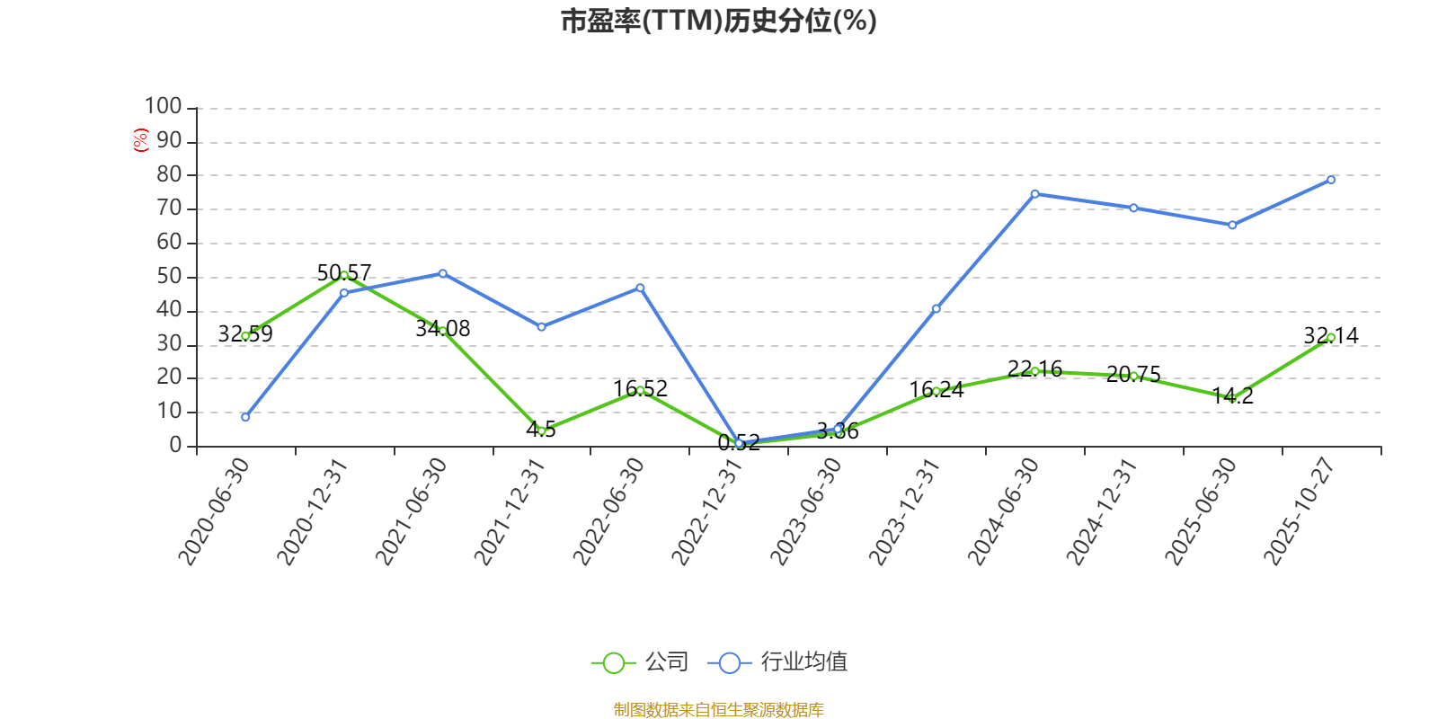 市盈率、市净率为负时,不显示当期分位数,会导致折线图中断。