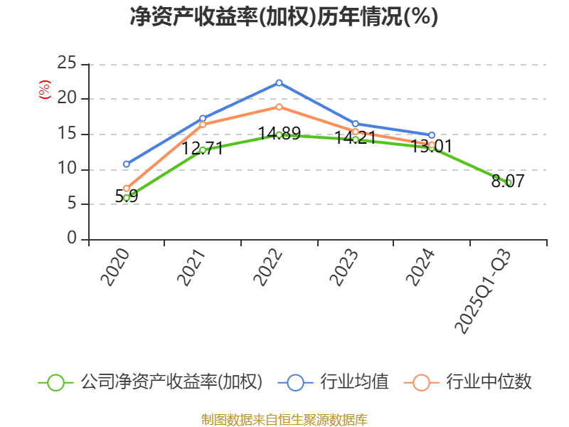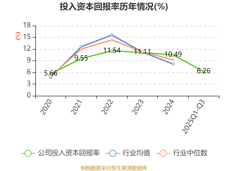 盈利能力方面, 2025年前三季度公司加权平均净资产收益率为8.07%,同比下降1.88个百分点。公司2025年前三季度投入资本回报率为6.26%,较上年同期下降1.74个百分点。