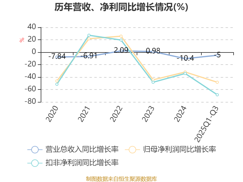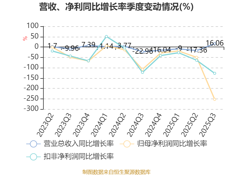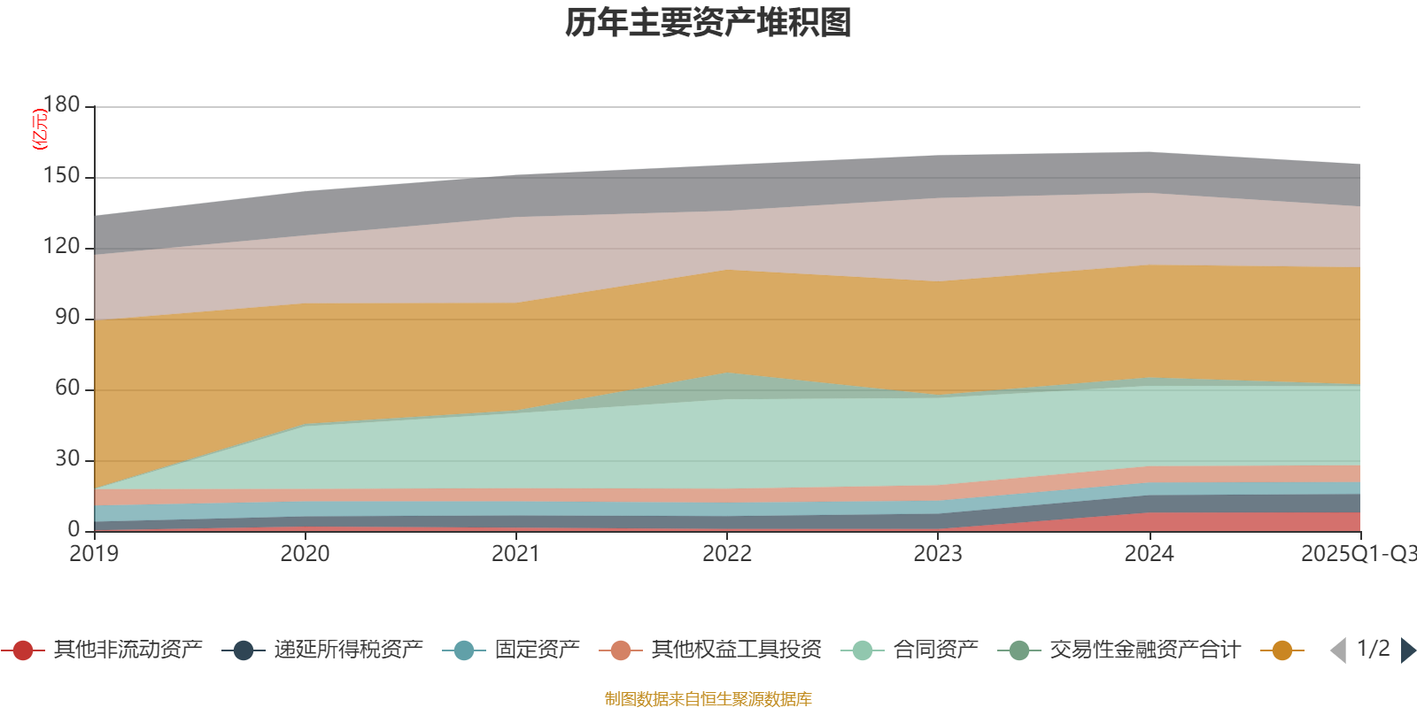 资产重大变化方面,截至2025年三季度末,公司货币资金较上年末减少15.46%,占公司总资产比重下降2.4个百分点;应收票据及应收账款较上年末增加3.91%,占公司总资产比重上升2.2个百分点;交易性金融资产合计较上年末减少78.28%,占公司总资产比重下降1.72个百分点;递延所得税资产较上年末增加6.95%,占公司总资产比重上升0.48个百分点。