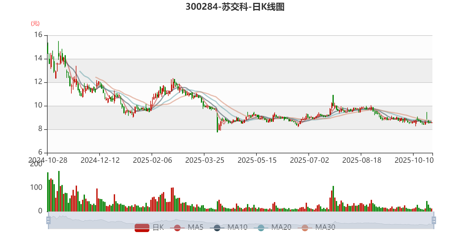 中证智能财讯苏交科(300284)10月28日披露2025年第三季度报告。前三季度公司实现营业总收入27.69亿元,同比下降5.00%;归母净利润7903.78万元,同比下降48.39%;扣非净利润3916.53万元,同比下降68.50%;经营活动产生的现金流量净额为-4.93亿元,上年同期为-7.47亿元;报告期内,苏交科基本每股收益为0.0626元,加权平均净资产收益率为0.01%。