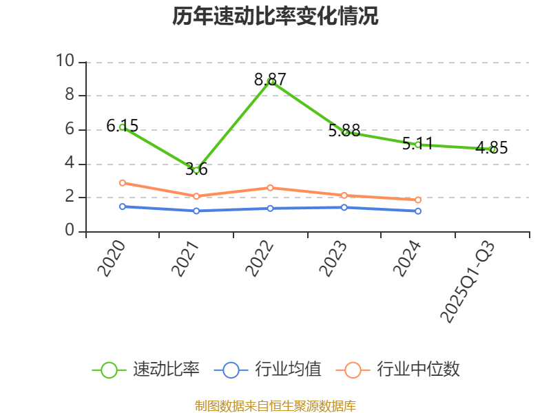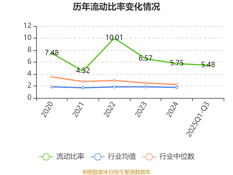 2025年前三季度,公司流动比率为5.48,速动比率为4.85。