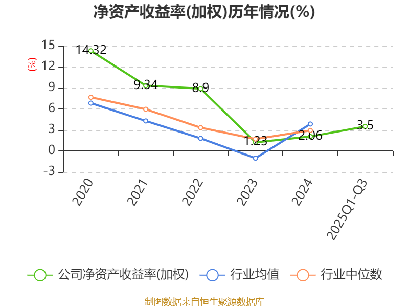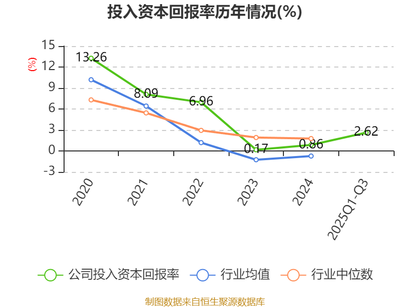 盈利能力方面, 2025年前三季度公司加权平均净资产收益率为3.5%,同比上升1.83个百分点。公司2025年前三季度投入资本回报率为2.62%,较上年同期上升1.96个百分点。
