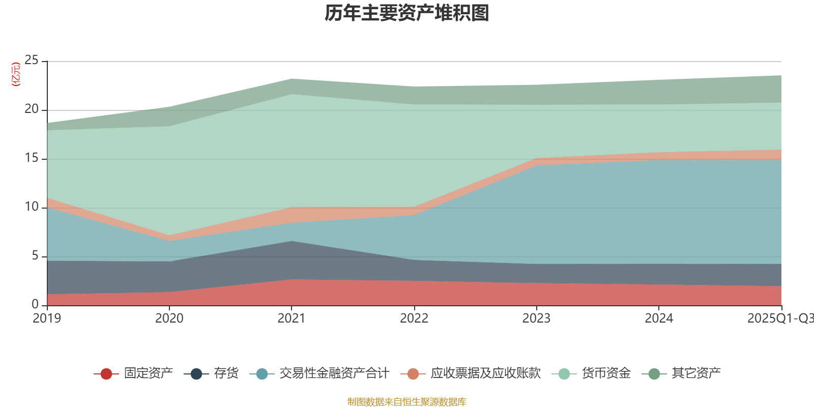 资产重大变化方面,截至2025年三季度末,公司应收票据及应收账款较上年末增加37.71%,占公司总资产比重上升1.2个百分点;固定资产较上年末减少7.87%,占公司总资产比重下降0.89个百分点;交易性金融资产合计较上年末增加0.03%,占公司总资产比重下降0.86个百分点;其他非流动金融资产较上年末增加57.14%,占公司总资产比重上升0.82个百分点。